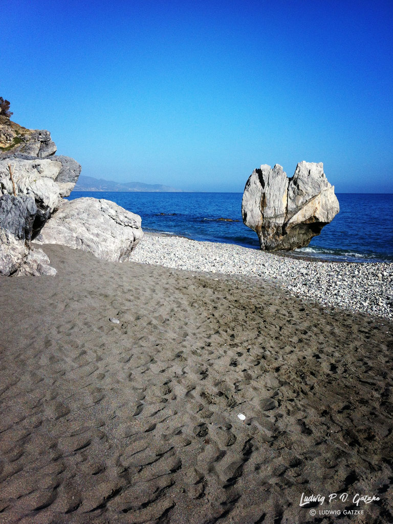The drive by rental car is easy, passing the so-called Venetian Bridge and the old abandoned monastery of Preveli and winding further to the parking lot, from where countless steps lead down to the bay.