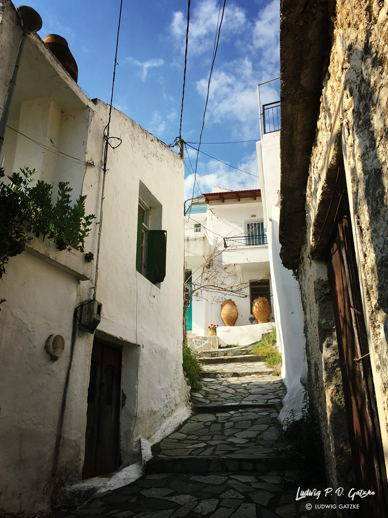 A central point is the fountain on the village square. Here water flows directly from the springs at Psilorits from stone lion heads. The water is of such good quality that not only travellers can refresh themselves quickly at it, but also locals can fill the fresh water into bottles.