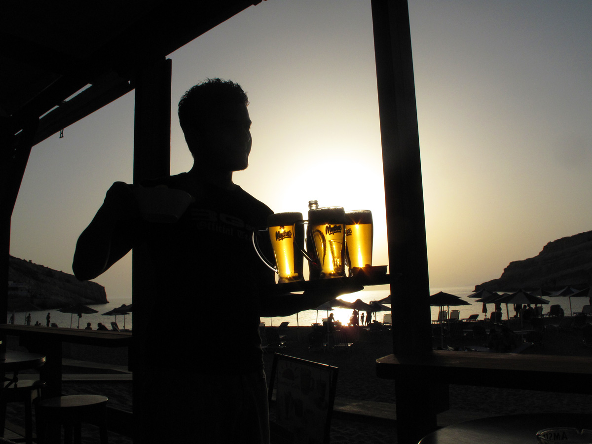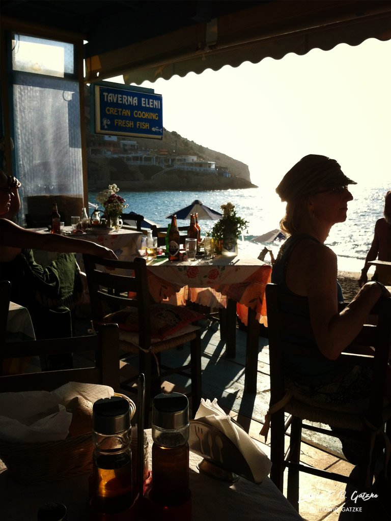 The image of Matala is characterised by many souvenir shops, bars, cafés and restaurants. But when the crowds of tourists leave in the early evening, you can enjoy the sunset with a cool drink overlooking the beach and the caves.